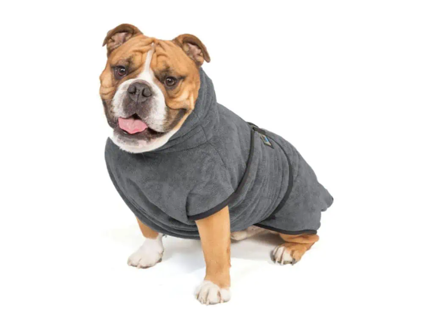 Unser Hundebademantel aus saugfähiger Mikrofaser ist die perfekte Lösung, um deinen Hund nach dem Baden, Schwimmen oder einem Spaziergang im Regen schnell zu trocknen.